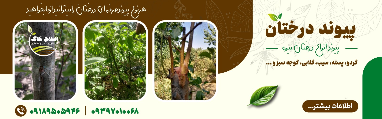 پیوند انواع درختان میوه مثل گردو.انگور .پسته.سیب.گلابی و...