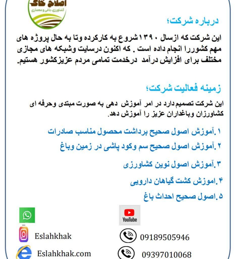 اگر بهدنبال یادگیری اصولی، کاربردی و بهروز هستید؛ آموزش آنلاین بهترین انتخاب برای شروع یک مسیر حرفهای و درآمدزا در حوزه کشاورزی است.